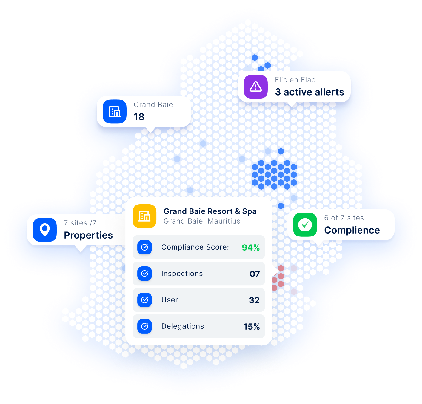 Whether you manage 3 properties or 30, Kovalli's multi-site compliance dashboard scales with your portfolio. Hotel groups across Mauritius can see at a glance which sites are meeting their OSH Act and fire safety obligations and which are falling behind.